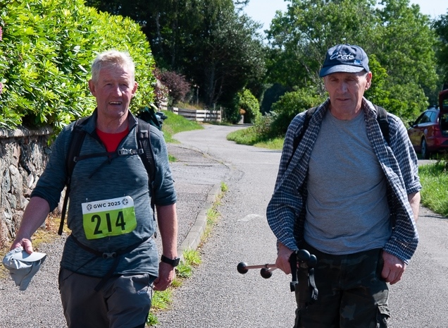 Colin Hexley from Golspie and John Maclellan from Poolewe finish together on the 13 mile Aultbea walk at Poolewe 2025. This was Colin's second GWC - and John's 39th! Perfect record shared with Kenny Mitchell, also of Poolewe.