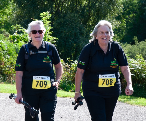 Perennial fundraisers for Highland Hospice Alison Marshall and Trish Macdonald completing their 28th and 20th GWCs at Poolewe 2025