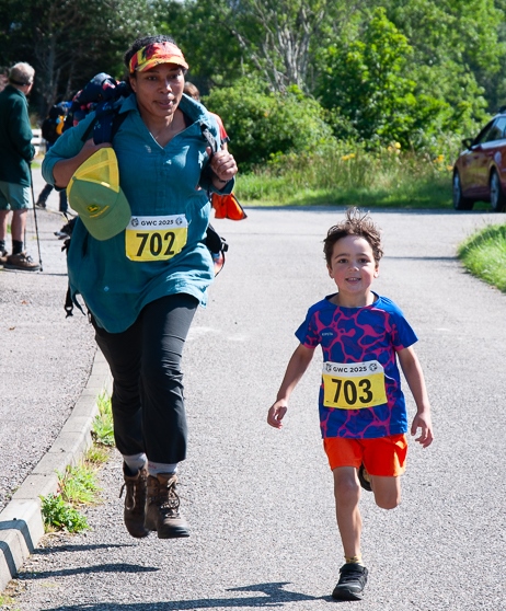 Calum Bartholomew from Kinlochewe pips his mother Ndurie to the finish line of his first GWC at Poolewe 2025