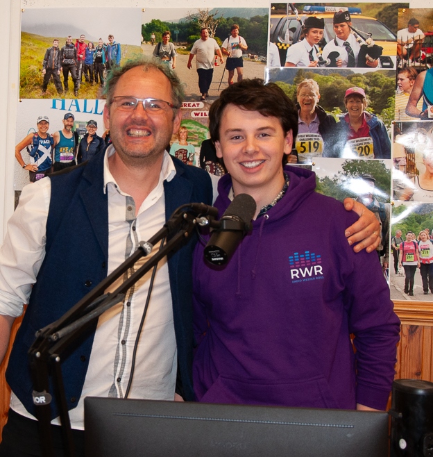 Radio Wester Ross presenters David and Joshua Taylor all prepared to interview participants in Poolewe Hall at GWC 2025